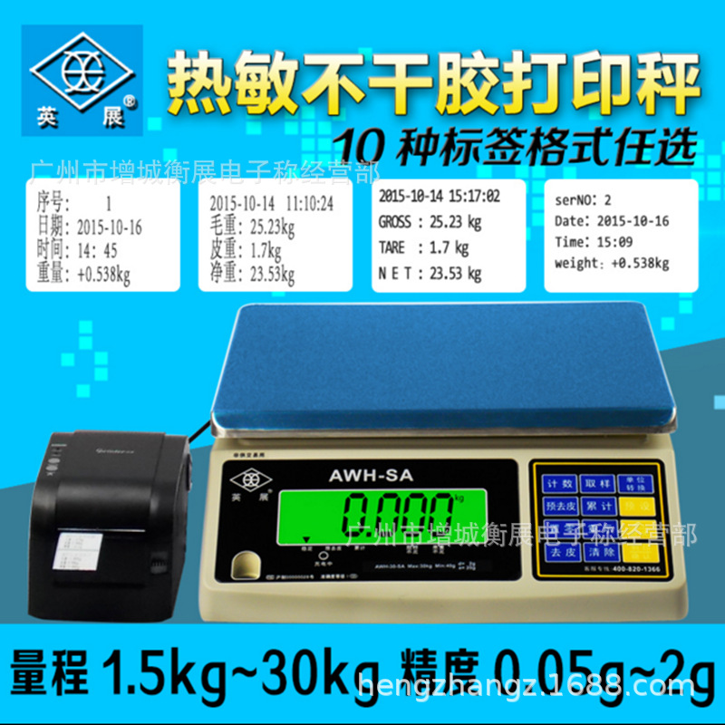 英展ACS-W-SA不干胶标签打印秤工业计重桌秤 1.5kg3kg6kg15kg30kg