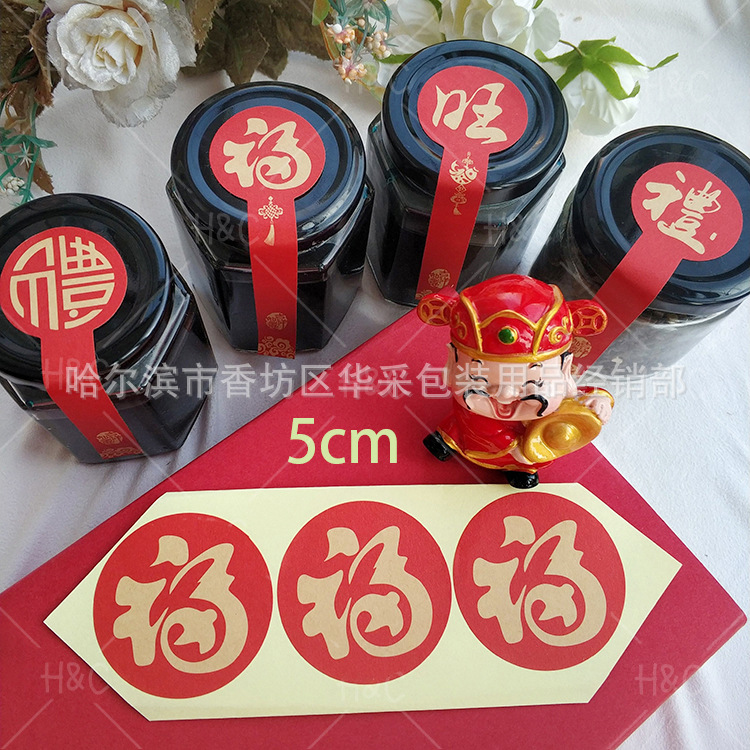牛皮纸不干胶 现货5cm春节喜庆喜字贴纸年有余万事如意新年标签