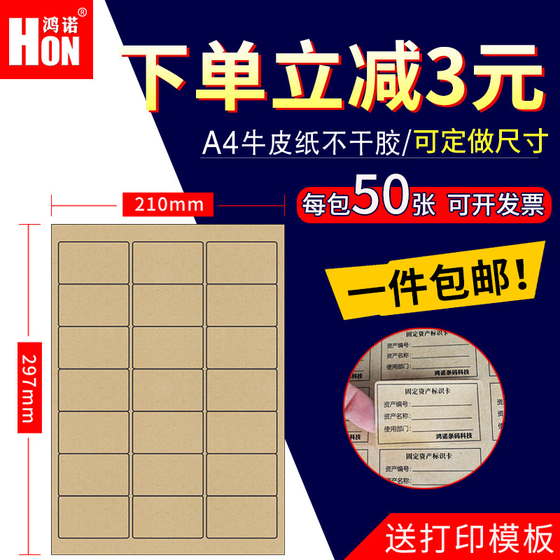 A4牛皮纸不干胶打印纸喷墨自粘贴纸空白纸箱色标签纸切割包邮