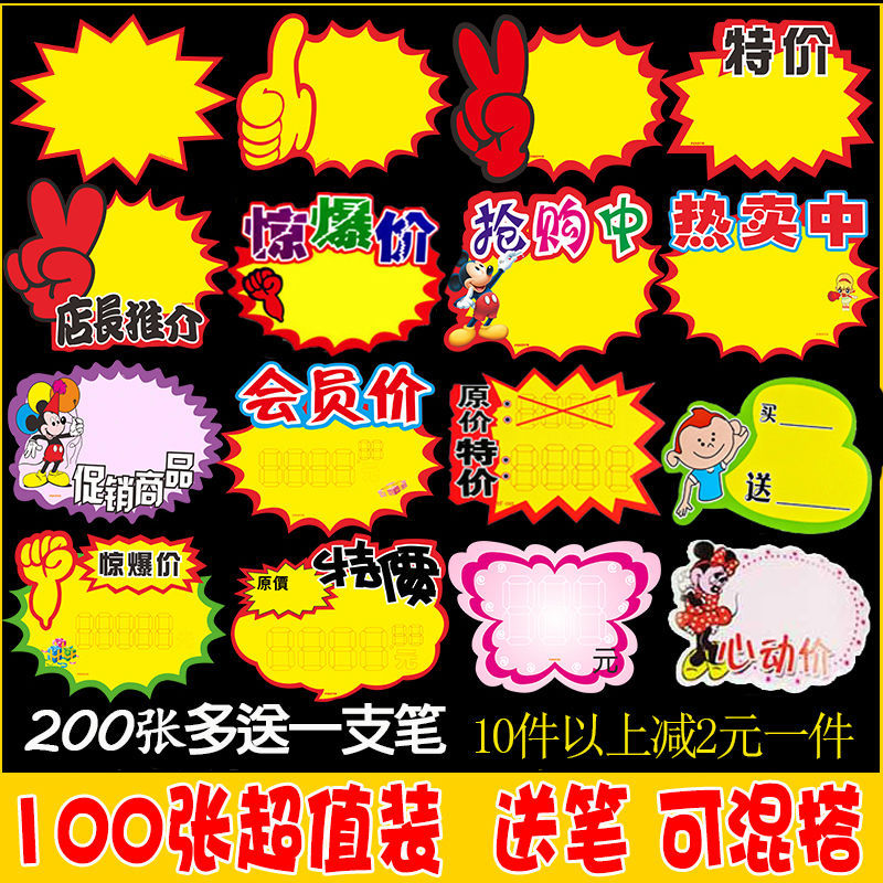 价格标签13*17大号POP广告纸爆炸贴签商品促销空白标价签