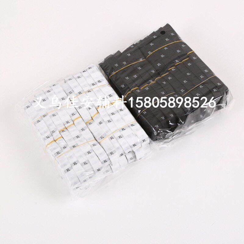 服装英文尺码标平面织唛水洗标高密号码标XS-6XL大小黑白码数标