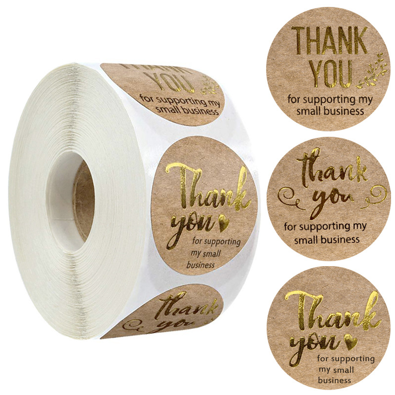 现货批发牛皮纸烫金感谢封口贴礼物包装装饰贴纸不干胶标签500/卷