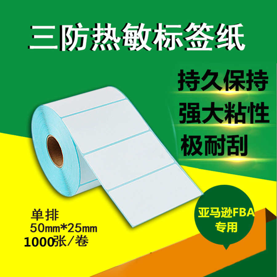 x强粘三防热敏不干胶50*25*1000张亚马逊FBA条码标签纸电子秤贴纸