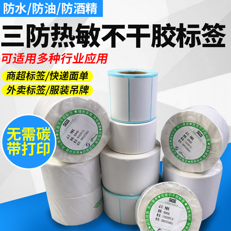 三防热敏不干胶标签功能:防水,防油,防摩擦,耐一定高温,易于打印,打印字符等清晰,适用于:物流,快递,超市,商场、服装、食品、图书等行业应用打印不干胶标签标示,粘贴牢固粘性好。厂家批发促销中,欢迎订购。