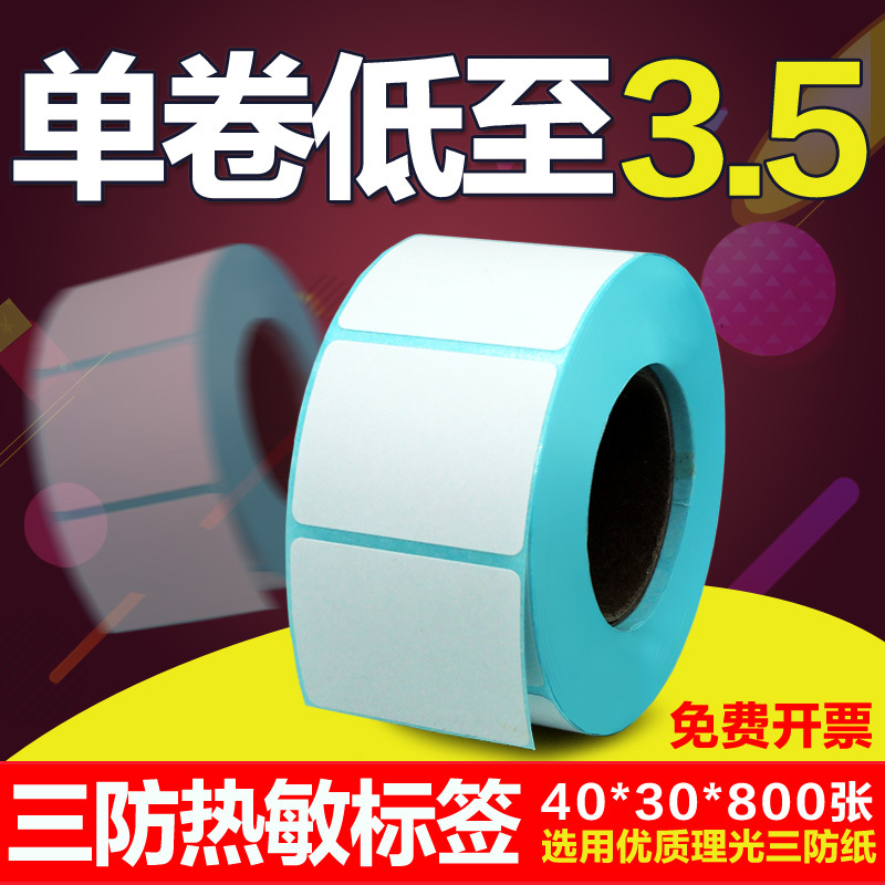 三防热敏纸空白不干胶标签40*30*800张 优质理光热敏贴纸条码标签