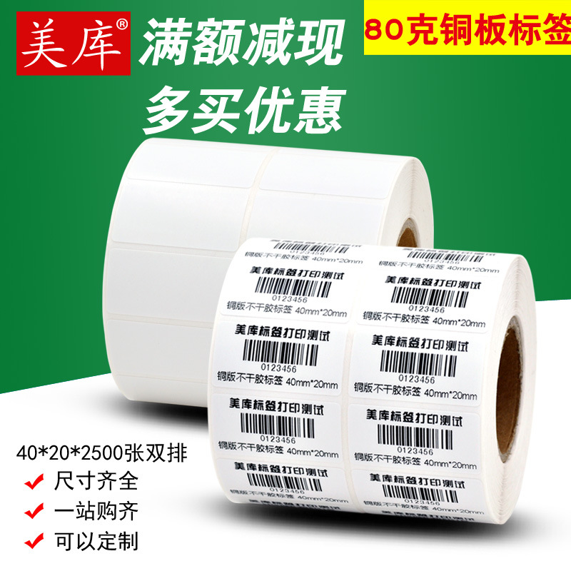 条码标签40*20 30 40 50 铜版纸不干胶标签 超市标签纸条码纸贴纸