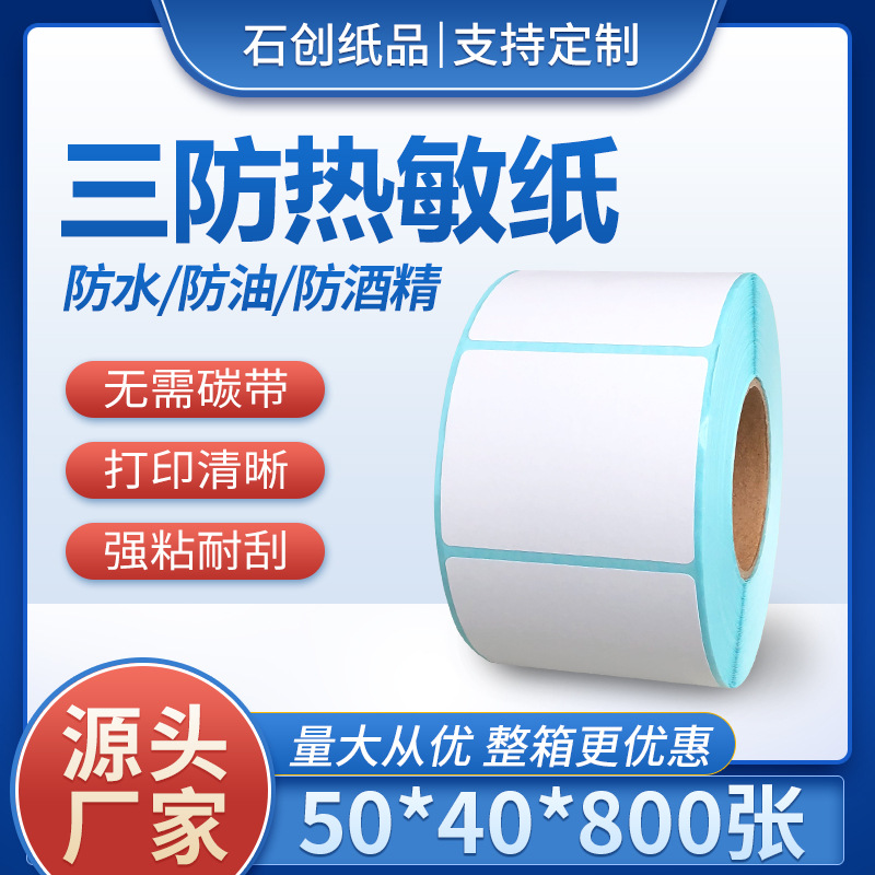 三防热敏条码纸电子称纸50*40*800不干胶 超市奶茶店热敏打印贴纸