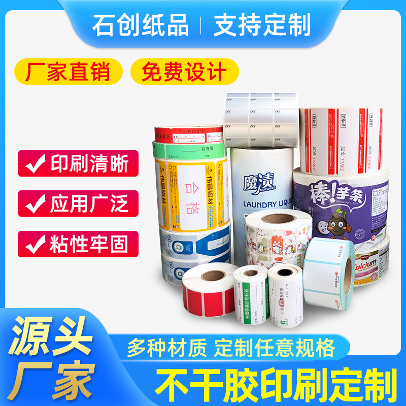 广州石创纸品,是专业的不干胶标签纸生产厂家,源头实力工厂做货出货,欢迎各商家订货。工厂采取,现货+定制模式,符合多样化客户的不同需求。工厂支持定制各类材质的条码纸不干胶纸,空白与印刷均可定制,量大价优,根据客户的需求做货,也可以拿样测试使用在做货。材质有:铜版纸,热敏纸,亚银pet,合成纸,透明不干胶,可移胶不干胶等。可联系咱们旺旺客服咨询或电话咨询。