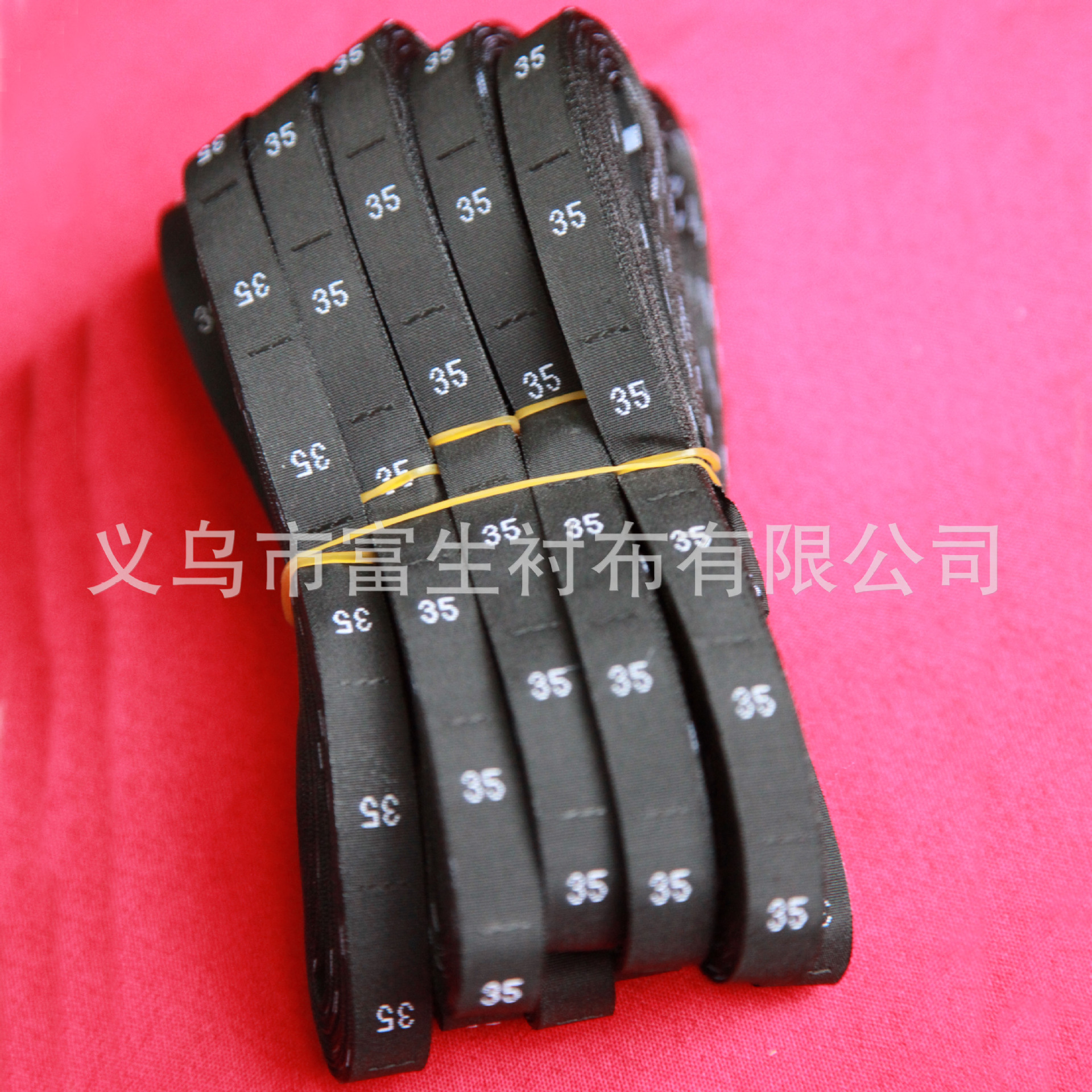 黑底白数字码标,规格有:36-48等,也可根据客户样品定做。颜色有黑色,白色。500个/圈,宽:1.42cm,长:3.2cm/个。欢迎新老顾客前来订购。