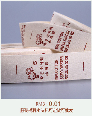厂家供应纱线水洗标 服装水洗标 家纺水洗标 现货水洗标批发 品名:水洗标 产品简介:水洗标是几种特殊材料做的标签。它的实质也是一种标签。只是在材料上跟普通纸质的标签有所区别。主要应用在服装行业里,主要是打印一些服装参数和注意事项。可过洗不掉色。 应用在服装行业里,主要是打印一些服装参数,标明衣服的面料、理料成分以及如何保养.可过洗不掉色. 材质有很多种,常见是白色得普通水洗布 水洗标可以使用条码打印机进行打印 水洗标的分类普通的水洗标包括 ⒈布料做的标签,叫做布标 ⒉绸缎材料做的标签,叫做缎标 ⒊织唛材料做的标签,叫做织标 公司专业生产加工彩盒、纸卡、吊牌、不干胶、说明书、水洗唛、织唛、包装盒、手提袋、金银卡纸盒、瓦楞纸盒等产品!欢迎新老客户前来订购! 水洗标的应用范围水洗标其实不是只是用于服装的,但是不可否定的是服装行业用到的是广的行业之一,当然鞋子,箱包,电子产品等各行各业只要需要用到标签的就有可能用到水洗标标签!