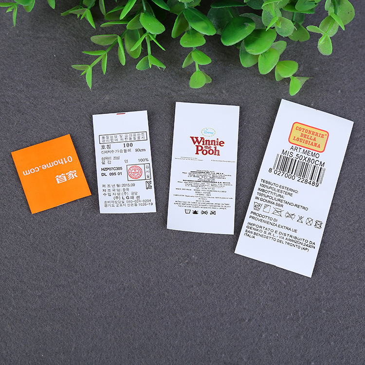 牛仔服装水洗标 家纺尺码织唛水洗标 中英文成分水洗标印刷logo