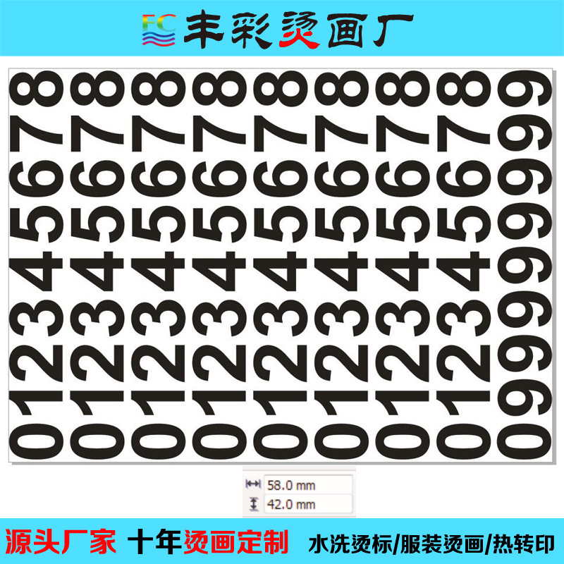 品名:运动号码标,号码烫画,球队标烫画,数字标烫画