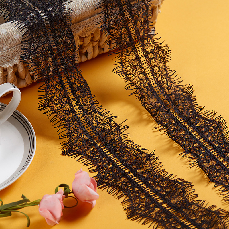 厂家直供双边蕾丝睫毛花边黑白色服装辅料厂家批发8.5厘米