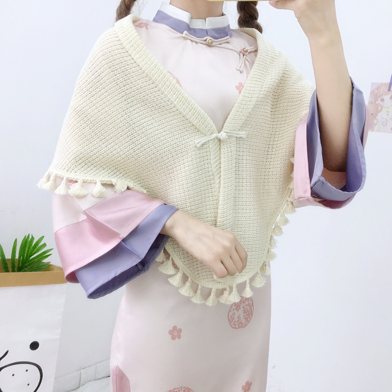 珠玉落 国风复古 柔软配搭 盘扣针织流苏披肩秋冬