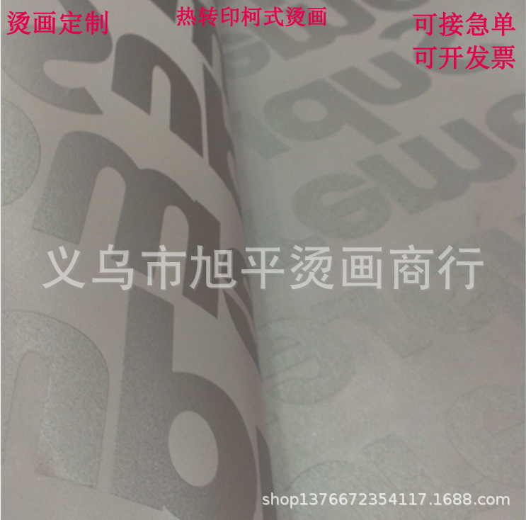 旭平烫画专业生产各种热转印烫画:柯式烫画、水洗标、葱粉夜光烫画、泳装高弹烫画、厚版立体硅胶烫画、植绒烫画、高银反光烫画、热升华免费设计排版,来图来样订做。