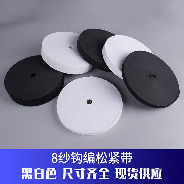 面罩松紧带现货勾边弹力橡筋带服装辅料黑白色8纱扁宽松紧腰带