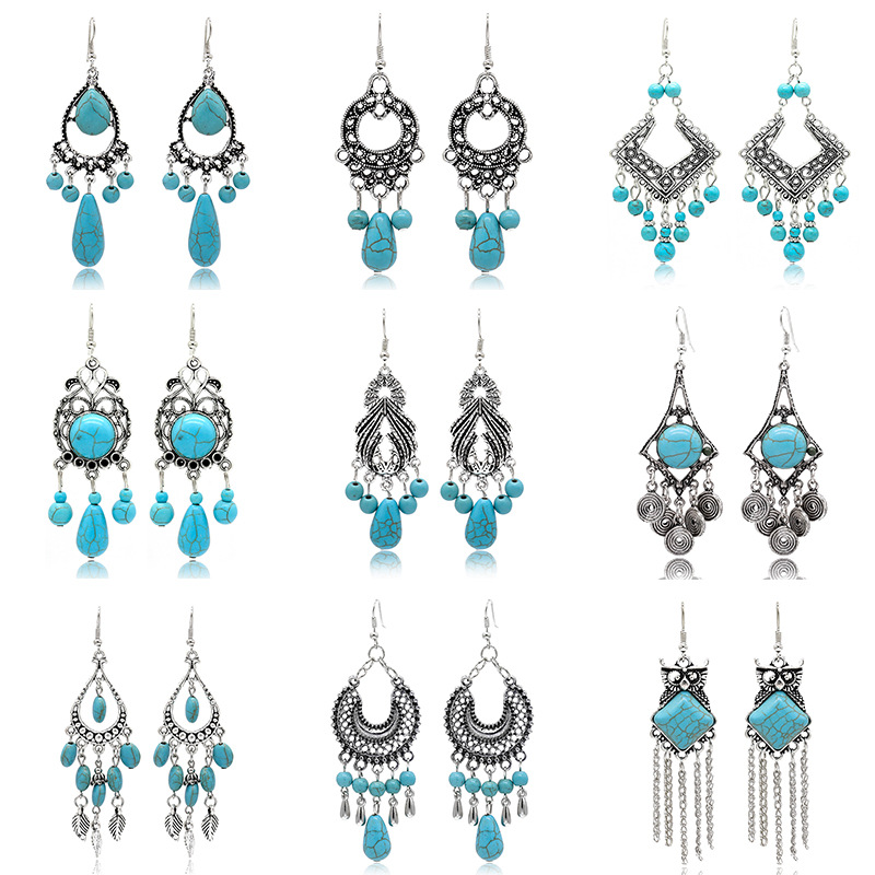 欧美新款民族风复古女款耳环波西米亚风情水晶流苏耳环厂家直销 | |