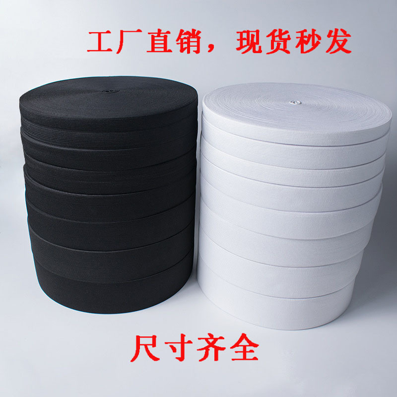 【品名】:厂家现货加厚黑色针织钩编8纱弹力防护服面罩服装辅料橡筋松紧带