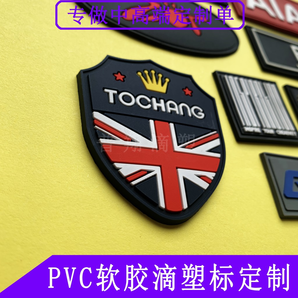 产品信息:滴塑标。由于大家对滴塑标的了解程度不同,也有人称之为软胶标、硅胶标、橡胶标、塑胶标、服装胶章、pvc胶章、pvc皮标、滴胶标等等。