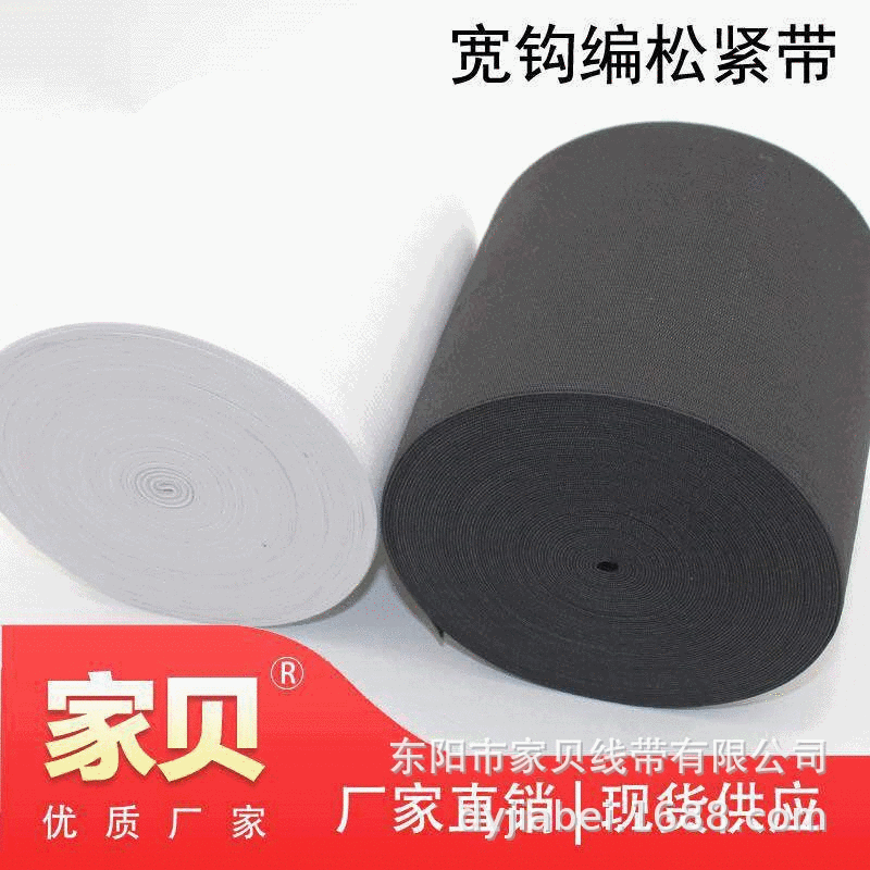 东阳家贝线带有限公司是一家专业生产钩编,无梭两大类;弹性、非弹性近千种织带产品的生产经营企业。一直致力于松紧带批发和织带设计、开发、生产和销售。我司可根据客户的不同要求对产品进行染色,产品具有耐光、耐高温、耐水洗、耐磨、不褪色等特点,广泛应用于服装、鞋、帽、袋包、玩具、汽车、工艺品、医疗器械等行业作辅助材料。我司创办于2008年,经过我司全体成员的共同努力下,家贝线带已经成为国内优秀的松紧带供应商之一。