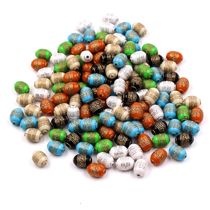 批发描金烫金珠子 彩色复古亚克力珠子diy饰品耳环服装辅料配件
