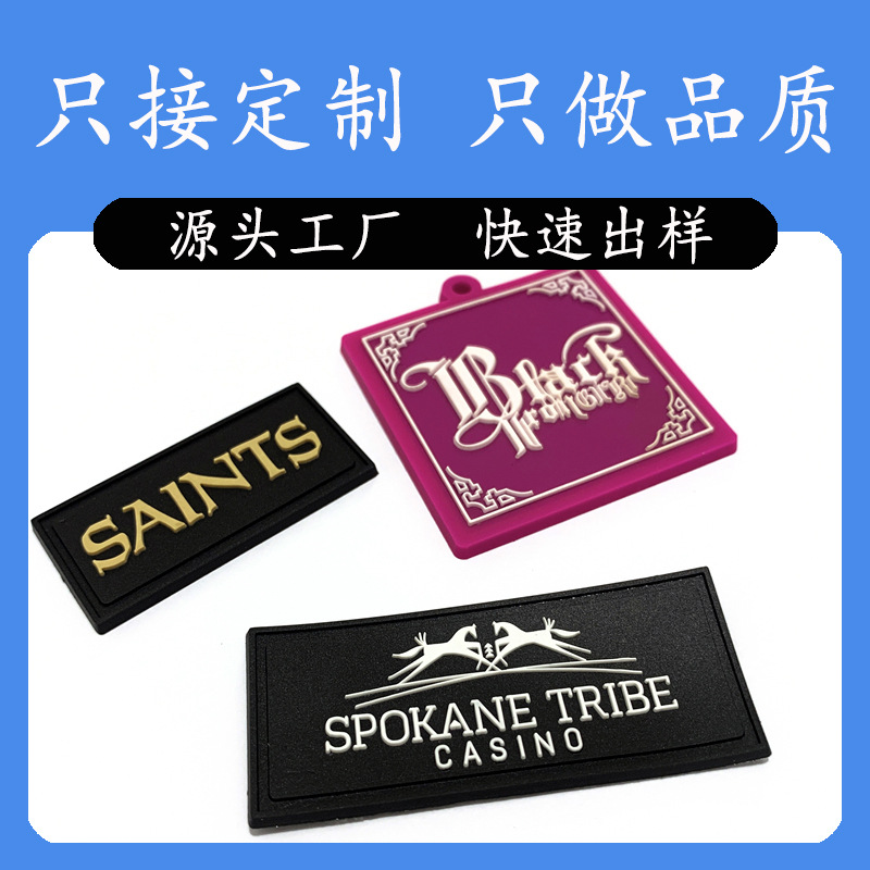 产品解释:滴塑商标,材质为pvc软胶,又称滴塑标、软胶标、橡胶标、橡皮标、胶章、pvc皮标、软标等等