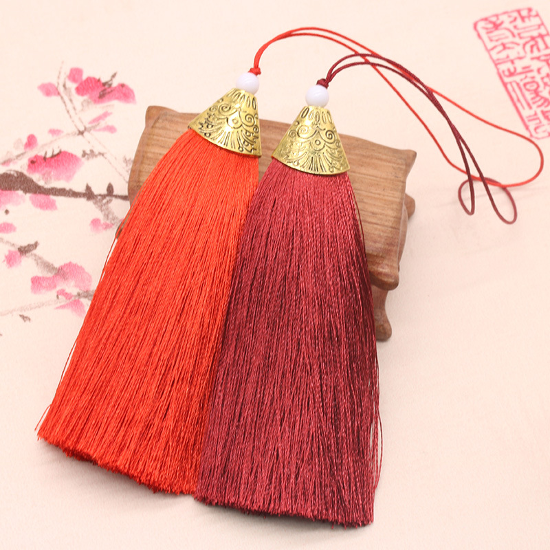 涤纶21CM金属鱼嘴帽彩色流苏穗子 中国风冰丝吊穗车挂吊坠可