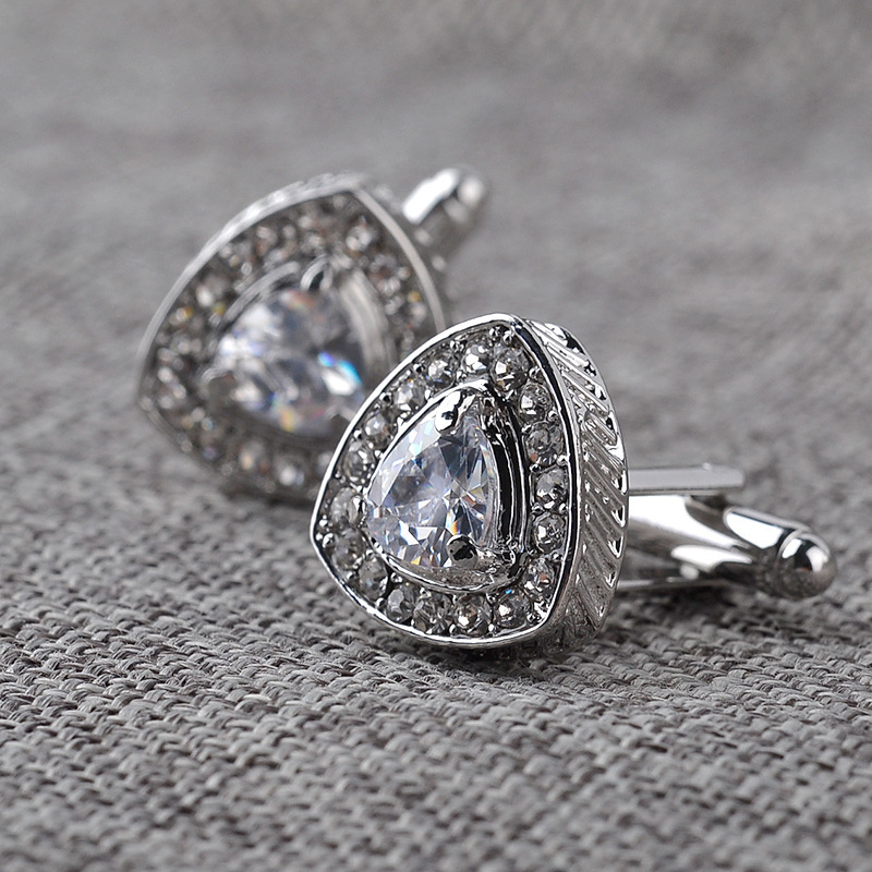热销男士衬衫袖扣 三角形水晶法式镶钻袖钉饰品水晶袖扣批发