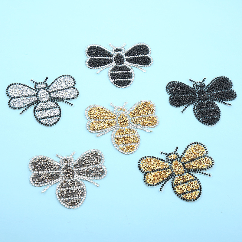 跨境水钻乱钻小蜜蜂热熔热熔胶网烫钻布贴烫图服装补丁直供批发
