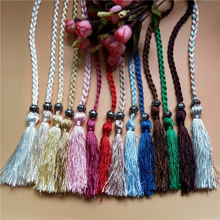 现货批发涤纶亮光编织绳流苏 加珠吊穗绳服饰腰带配饰辫子绳流苏