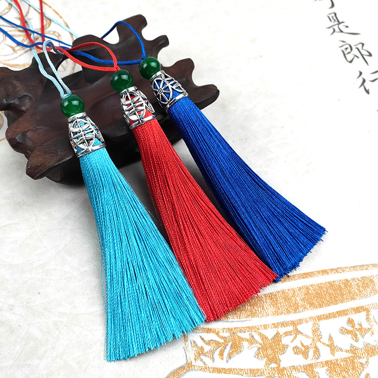 厂家直销 新款高品质中国结特细软滑冰丝合金带玉珠流苏穗子批发