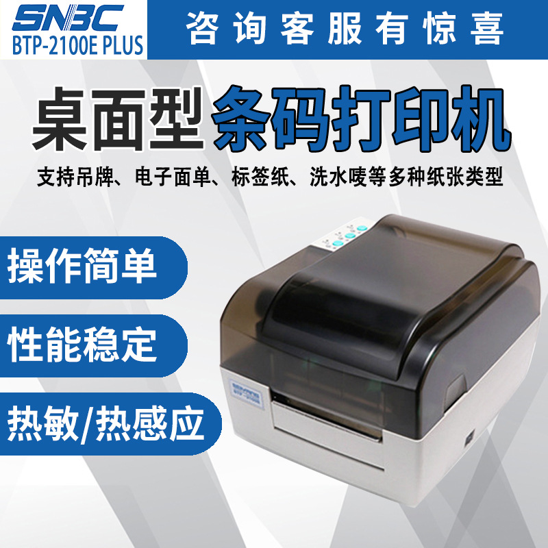 BTP-2100E系列是热敏/热转印桌面型标签打印机中的经典机型,该产品采用大容量耗材结构设计,可容纳长度为300m的碳带和直径为127mm的纸卷,除此之外,在关键件可靠性及人机界面方面非常注重。外观设计精巧,性能卓越,是理想的办公条码标签打印设备,适用于即时标签打印/产品标签批量打印/运输、物流标签打印/固定资产管理、仓库管理、医疗器械管理、图书管理、超市管理等领域。