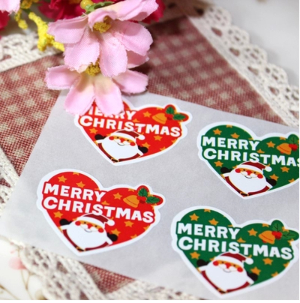 【品名】:烘焙平口袋装饰贴纸圣诞节爱心形圣诞老人蓝绿款包装袋装饰贴纸