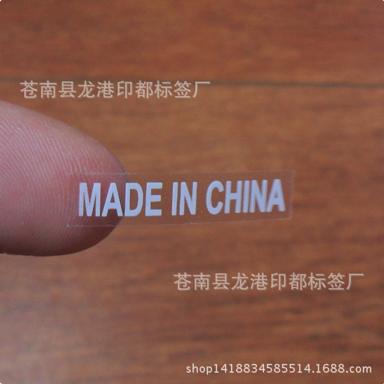 产品:MADE IN CHINA 中国制造透明标签白色字