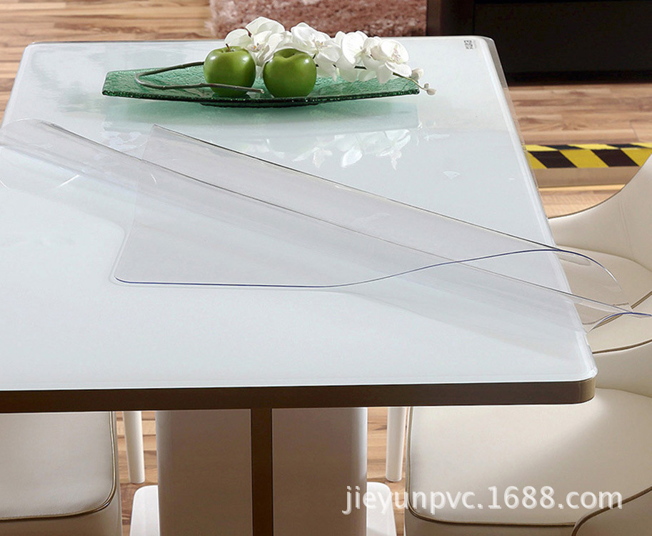 透明软板(软玻璃)是一种优质的塑胶复合材料,表面光滑、亮丽透明、无裂缝、无气泡、色泽均匀、具有耐热+160度、耐寒-30度、耐强酸、碱、耐重压、抗静电、抗冲击、抗拉力、抗老化、透光性好、使用寿命长等特点。