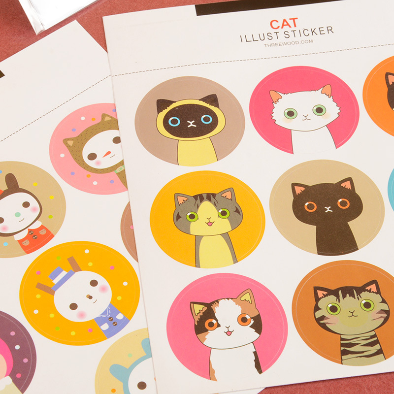 儿童DIY相册材料粘贴式卡通手工配件工具可爱小猫机器人表情贴纸