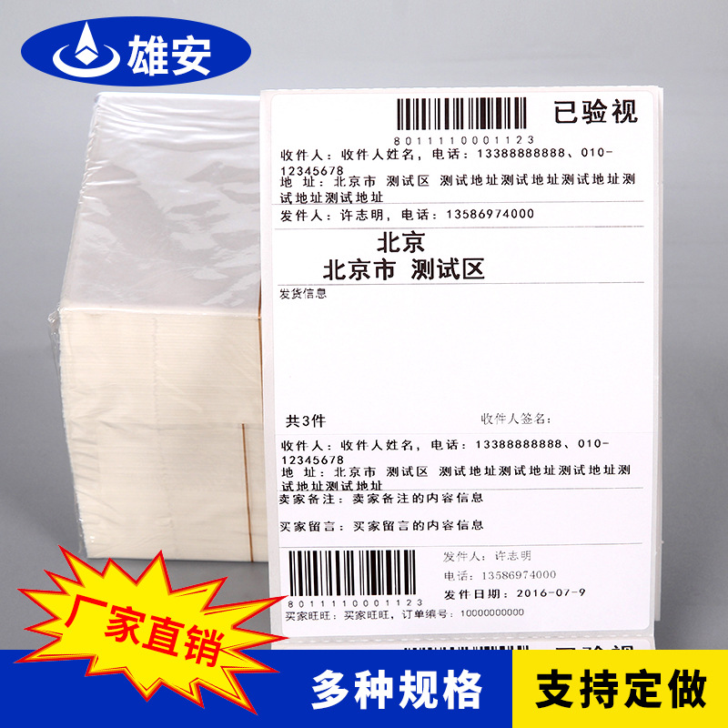 韵达中通申通空白天天百世邮政快递 电子面单打印纸热敏纸 不干胶