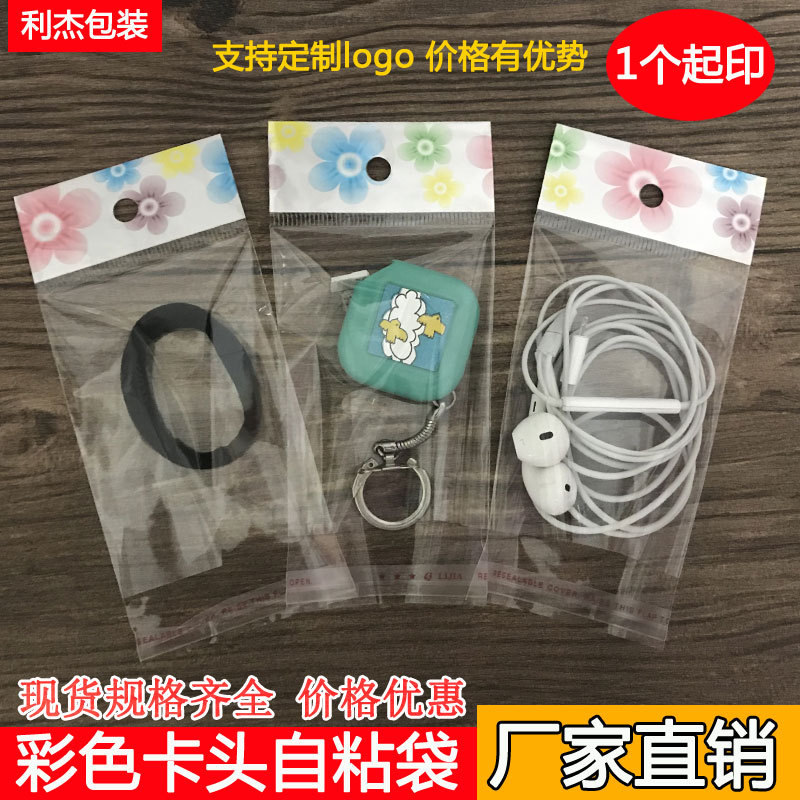 opp袋彩色卡头自粘袋不干胶挂孔透明袋文具配件包装袋7*23/100个
