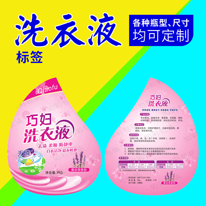 洗衣液标签设计定做洗衣液瓶子包装袋透明不干胶标签定制印刷logo