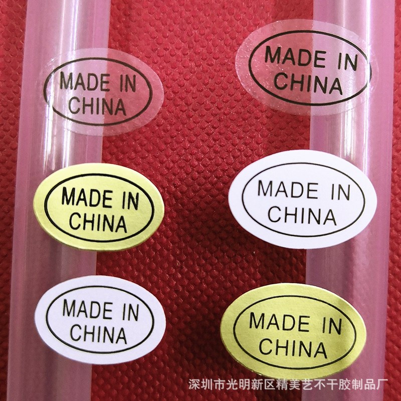 中国制造标签 透明不干胶made in china贴纸白色金色产地标贴现货