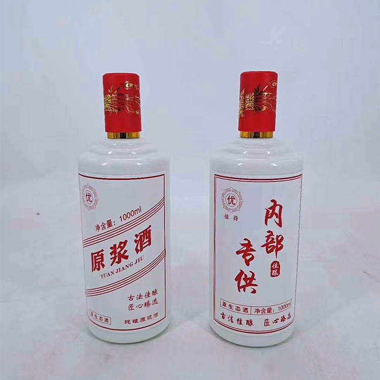 厂家批发2斤1000ml装白瓷酒瓶 压口白瓷瓶牙口白瓷瓶两瓶装带瓶贴