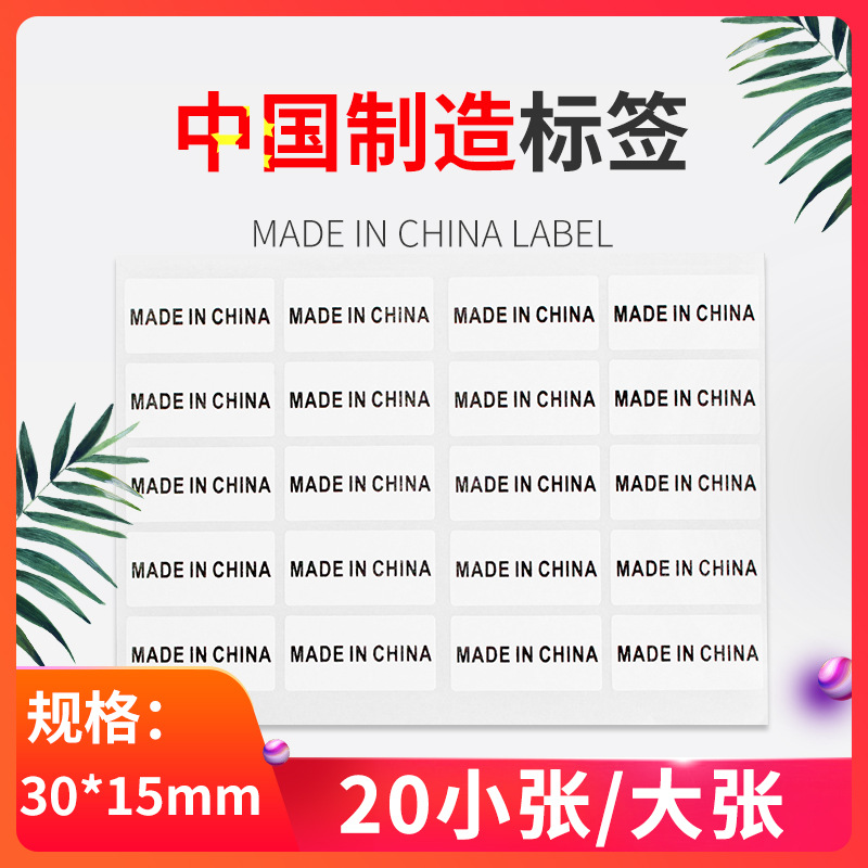 made in china英文中国制造标 铜版不干胶标签贴纸 产地标贴定制