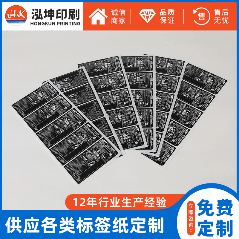 | 泓坤PET透明防水易碎防伪不干胶标签贴纸商标卷筒印刷logo定制 | |