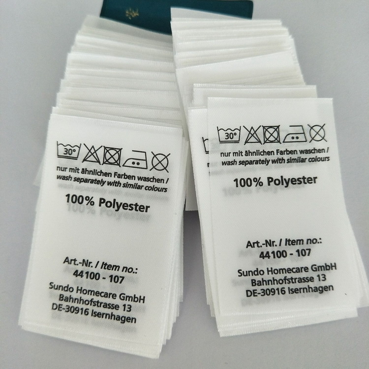 产品简介: 水洗唛,也叫水洗标、洗水唛,俗称唛头。主要成分为尼龙、涤纶、棉带、聚酯料、缎带,根据客人喜好选择相应的材质,通常洗水标印刷内容是产品信息,如品牌、款号、尺寸、大小、产品成分、水洗符号、洗涤注意事项、制造商信息等。