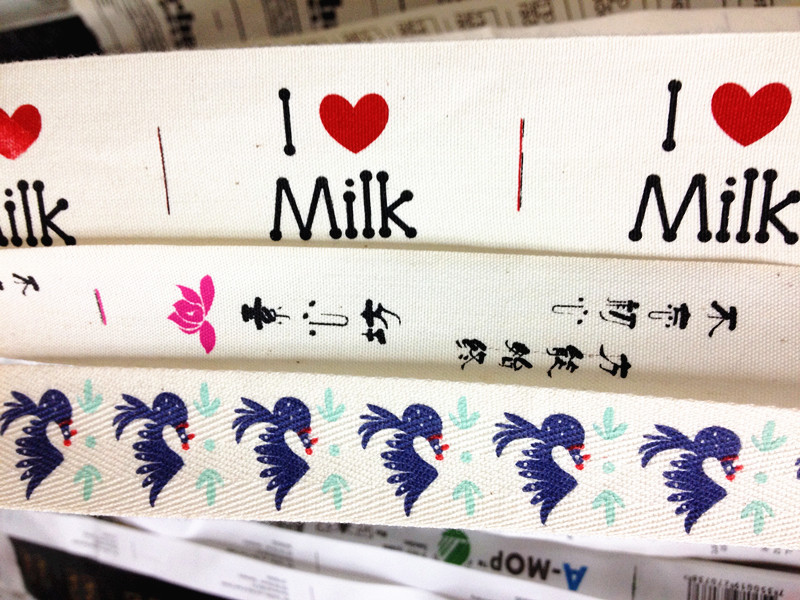 印唛就是印的洗水标,侧在衣服内侧缝上的,印有洗涤说明和注意事项(最少2000起印)。印唛常用的有两种质量:胶带和丝带(也叫绸带缎带),胶带的摸起来手感像纸,但是撕不破,印出来的内容清晰(只有白带)。丝带的摸起来手感比较光滑,有黑带和白带,黑带上印白色的内容,印出来的白色会有带一点银灰,因为黑色底太深色!