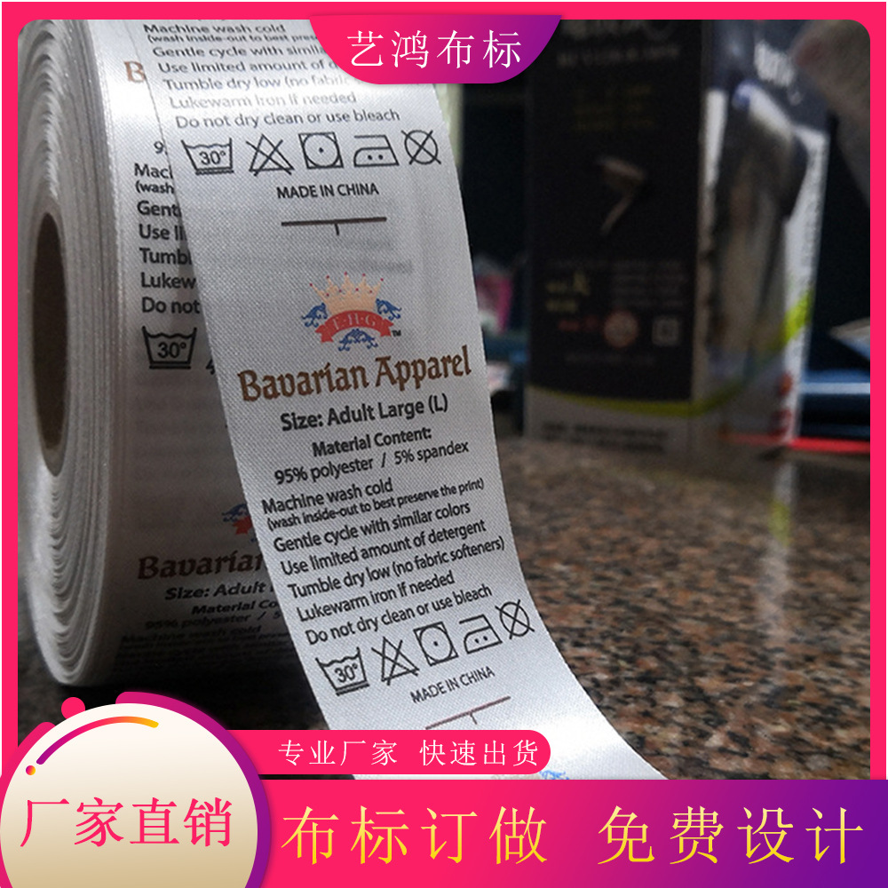 厂家印制家纺布标 商标领标服装辅料水洗标 侧唛唛头中英文水洗唛