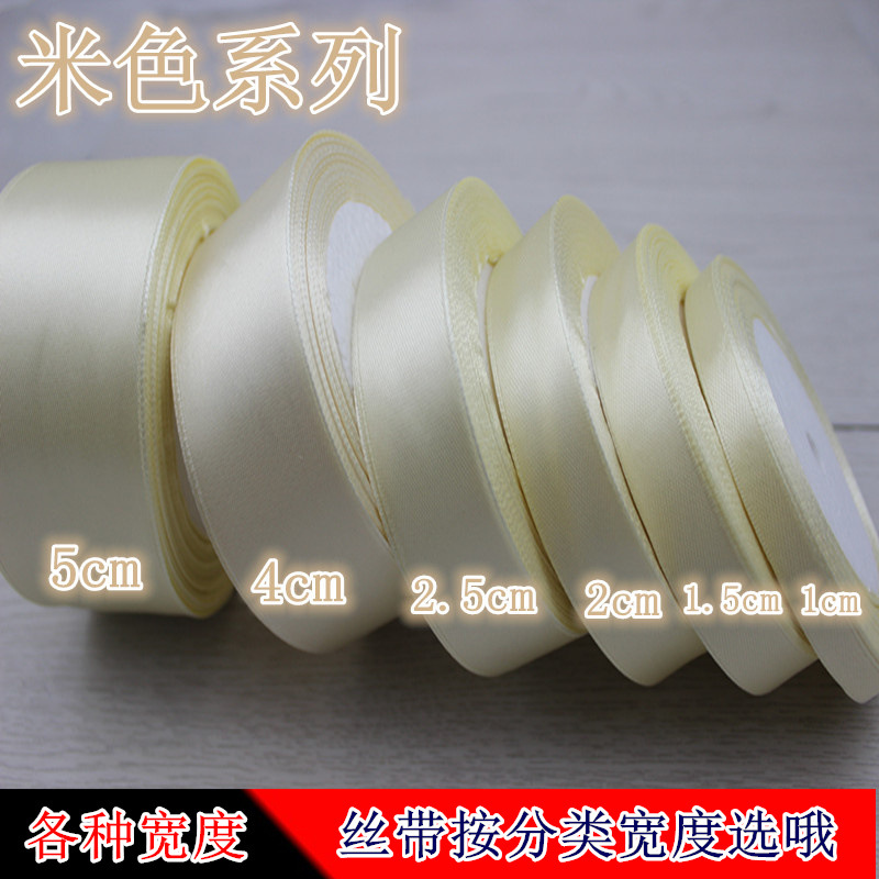 品名:米色丝带 实物偏黄 此款丝带只能做礼品包装带,不能做发饰哦,如果丝带剪开头有一点拉丝,请用打火机轻轻的撩一下就好。8cm以上是绸带品质要柔软一点。