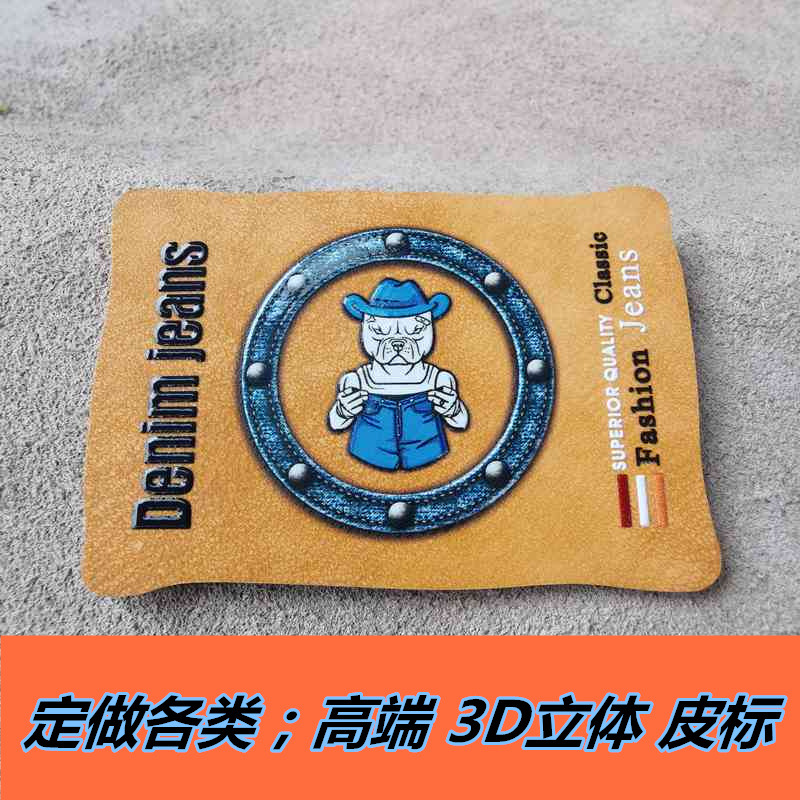 皮标定制皮牌商标服装真皮3D立体皮标帽子LOGO定制压印超纤PU高端