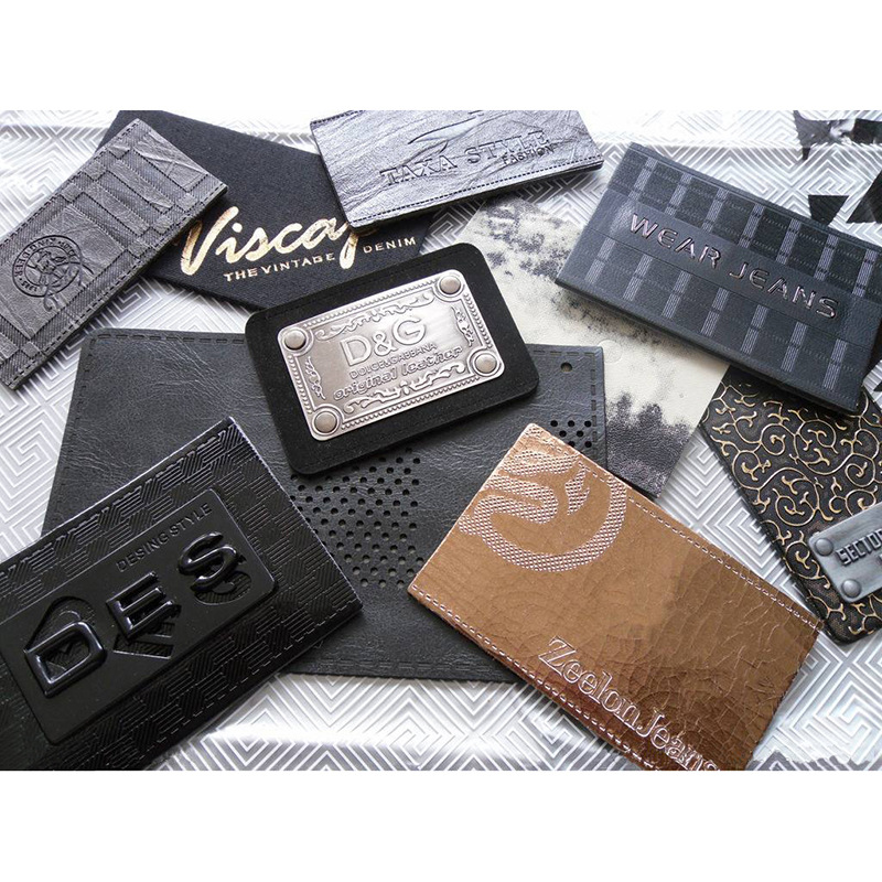 厂家直销pu皮标皮牌定制服饰真皮标热压商标金属压花变色皮牌定做