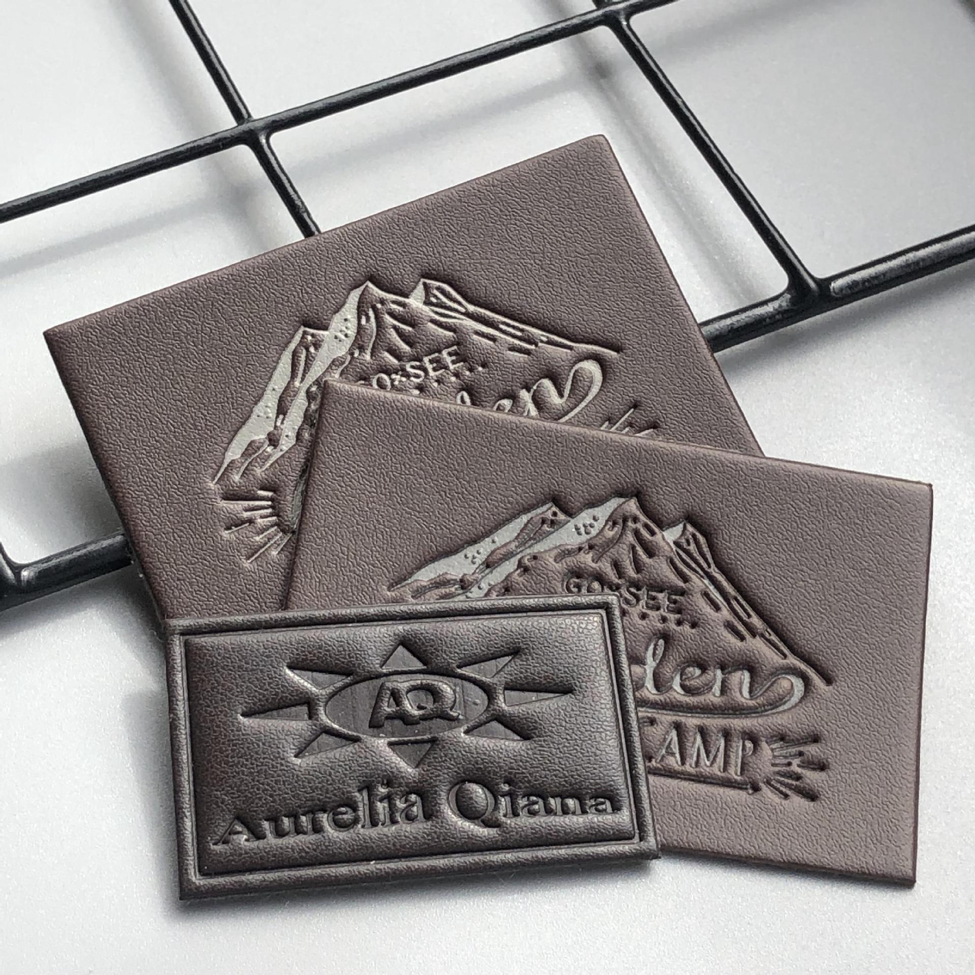 高端PU皮标定做 咖啡色仿皮真皮压印皮牌 牛仔裤鞋包皮牌logo设计